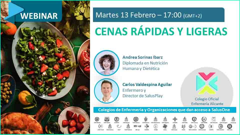 La nutricionista Andrea Sorinas, será la instructora de un nuevo webinar que ofrece el Colegio de Enfermería de Alicante, a través de su Área de Formación, coordinada por Juan José Tarín Este evento, alojado en la plataforma SalusOne, se centrará en el tema crucial de la alimentación saludable, con especial atención a las cenas rápidas y ligeras. Andrea compartirá valiosos consejos y trucos para preparar cenas de manera eficiente, asegurando que sean tanto saludables como ligeras.