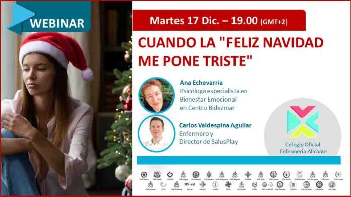 Se acercan unas fechas alegres para muchos y complicadas para otros. Es un momento en el que la falta de un ser querido se hace más presente que en otras ocasiones. Hablaremos de esto con la psicóloga Ana Echevarria, para saber cómo afrontar esta temporada. No te pierdas este webinar que te ofrecemos a través del Área de Formación del Colegio de Enfermería de Alicante, coordinada por el vocal V de la Junta de Gobierno, Juan José Tarín, y SalusOne.