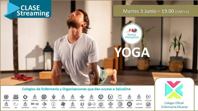 El Colegio de Enfermería de Alicante, mediante su Área de Formación, coordinada por el vocal V de la entidad, Juan José Tarín Sáez, pone a tu disposición, mediante la plataforma SalusOne, una nueva clase streaming de Yoga. Tendrá lugar el martes 3 de junio a las 19:00h.