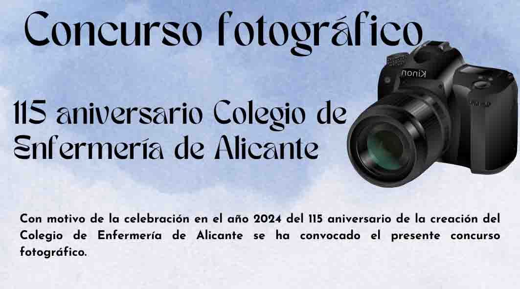 En 2024 se cumplen 115 años de la creación del Colegio de Enfermería de Alicante y con tal motivo se ha convocado un Concurso Fotográfico. Esta convocatoria está abierta a la participación de enfermeros y enfermeras colegiados, estudiantes de Enfermería y compañeros jubilados, que pueden presentar sus fotografías con libertad para elegir el motivo de las mismas.