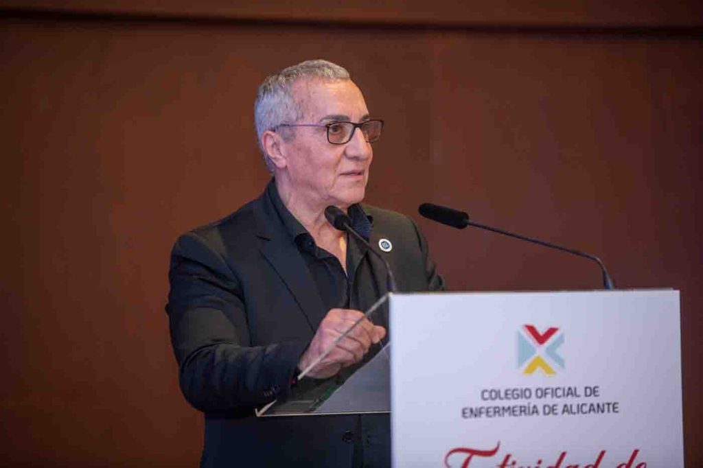 Tras sus palabras se abrió un programa de actos que comenzó con la conferencia “Inteligencia Original: El arte de cuidar en la era de los algoritmos”, a cargo de Juan José Tirado, presidente del CECOVA. En ella abordó con un tono de humor la aparición de la Inteligencia Artificial y su aplicación por parte de Enfermería, destacando la gran aportación de esta herramienta que, sin embargo, nunca podrá sustituir la humanidad de la Enfermería. Ante ello pidió no dejar que la tecnología robe la alegría de ser sanitarios.