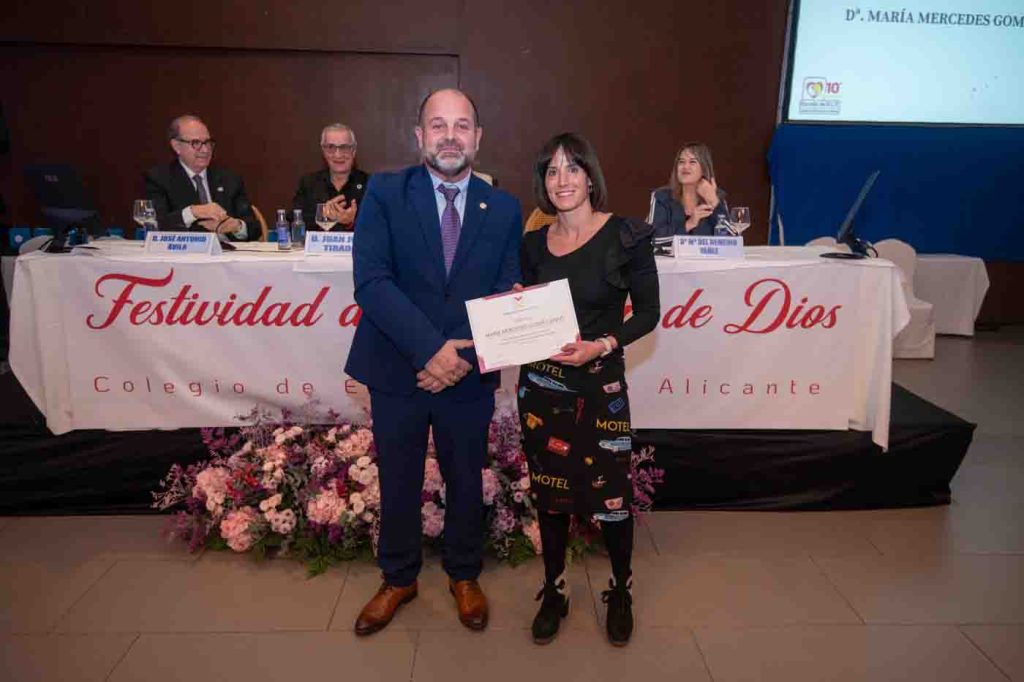 La presidenta del Colegio de Enfermería de Alicante, Montserrat Angulo, dio la bienvenida a los asistentes destacando la figura de San Juan de Dios como un referente de entrega, humanidad, cuidado y compromiso con las personas más vulnerables. “Una celebración _dijo_ que adquiere un significado más especial porque coincide con el Día Internacional de la Mujer, lo que no es una coincidencia menor. La Enfermería ha sido y sigue siendo una profesión ejercida de manera mayoritaria por mujeres, mujeres que históricamente han cuidado dentro y fuera de los hospitales desde la discreción, la entrega y el sacrificio. Celebrar San Juan de Dios es celebrar los valores del cuidado. Celebrar el Día Internacional de la Mujer es reconocer la fuerza, capacidad y la aportación de tantas mujeres que han sostenido históricamente ese cuidado”.