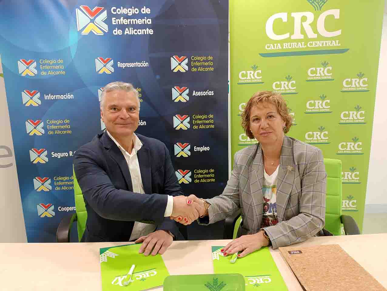 El Colegio de Enfermería de Alicante y Caja Rural Central han suscrito un convenio de colaboración por el cual los colegiados y empleados de la institución colegial van a poder disfrutar en condiciones preferentes de los productos y servicios de la entidad financiera.