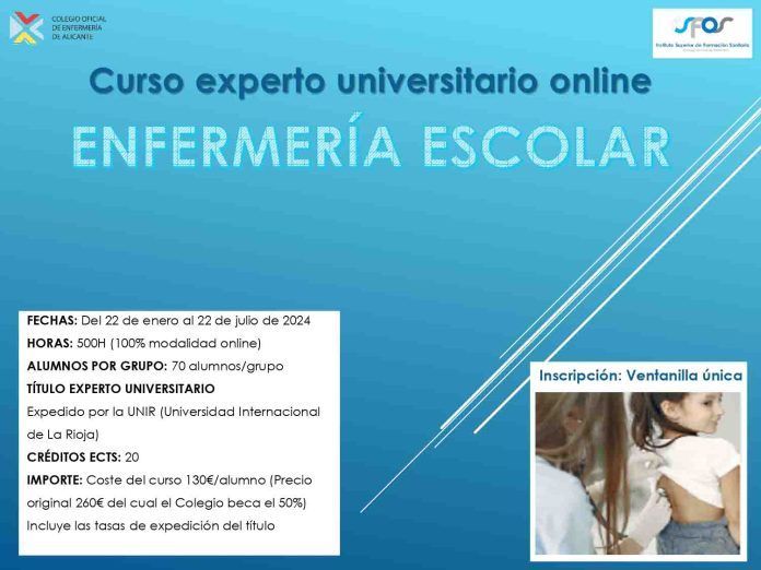 Las inscripciones para este curso de experto universitario en Enfermería Escolar se pueden realizar en este enlace.