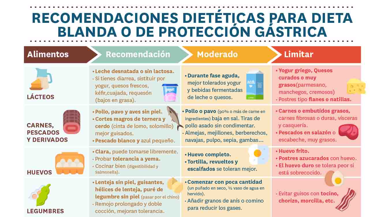 La dieta blanda o de protección gástrica se recomienda cuando es necesario reducir al mínimo la actividad del sistema digestivo para facilitar la recuperación. Es fundamental que esta dieta sea prescrita por un profesional sanitario, quien evaluará las necesidades específicas del paciente para asegurar una alimentación adecuada durante el proceso de recuperación.