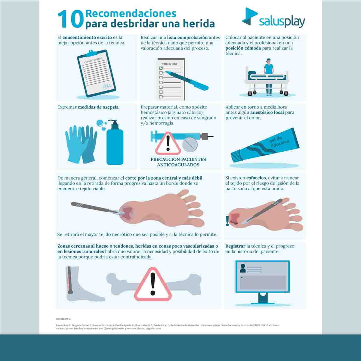 En esta infografía, encontrarás los principales tipos de desbridamiento, así como las recomendaciones sobre cómo realizarlos.