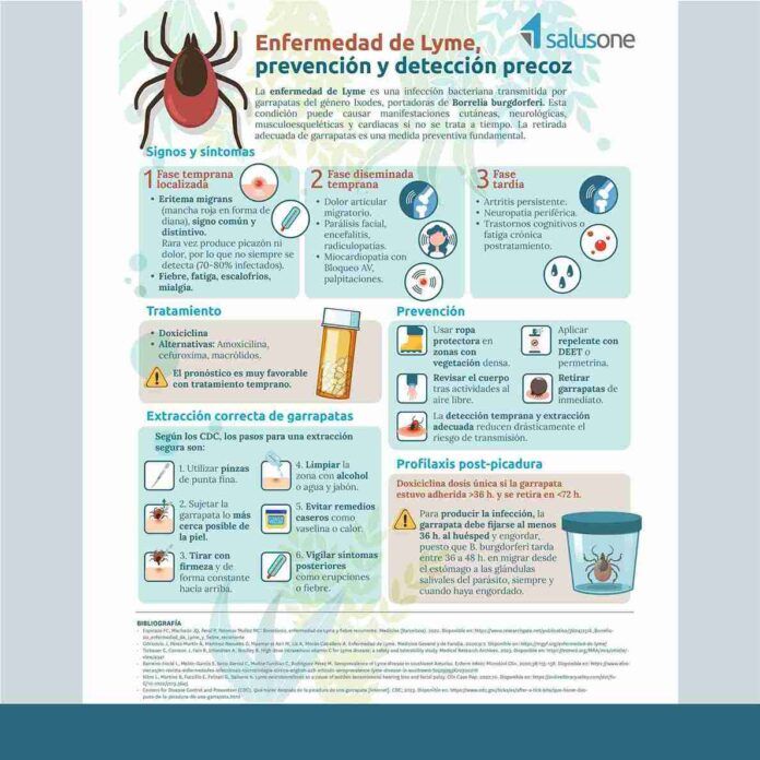 El Colegio de Enfermería de Alicante, mediante su Área de Formación coordinada por el vocal V de la entidad, Juan José Tarín Sáez, pone a tu disposición, a través de la plataforma de formación online, SalusOne, que tiene contratada el Colegio, una nueva infografía basada en evidencias sobre “Enfermedad de Lyme, prevención y detección precoz”.