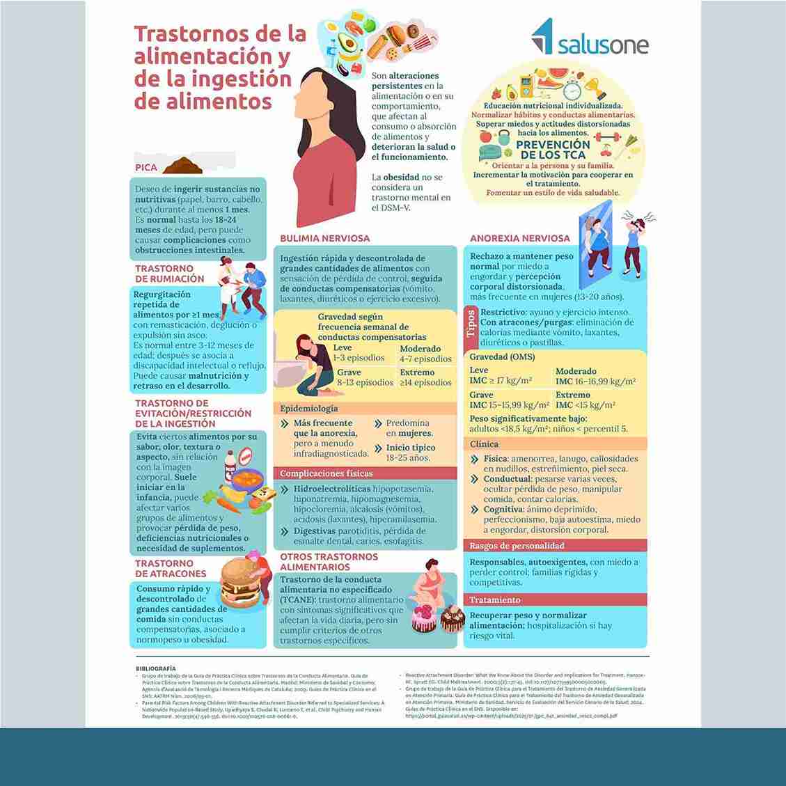 El Colegio de Enfermería de Alicante, mediante su Área de Formación coordinada por el vocal V de la entidad, Juan José Tarín Sáez, pone a tu disposición, a través de la plataforma de formación online, SalusOne, que tiene contratada el Colegio, una nueva infografía basada en evidencias sobre “Trastornos de la alimentación y la ingestión de alimentos”.