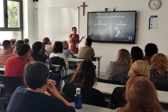 A lo largo de la tarde, los asistentes participan en unos talleres centrados en la incorporación de la inteligencia artificial a la práctica enfermera. Entre ellos, el taller “Cómo aplicar la IA en el ámbito docente”, impartido por Jorge Mora, jefe de Proyecto de IAcademia, permite a los participantes aprender a integrar esta tecnología en su labor docente, innovando en la manera de enseñar y diseñar contenidos.