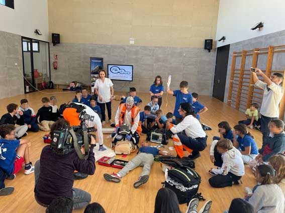 Este proyecto RCP abarca los cursos de 6º de Primaria, ESO, Bachiller y ciclos formativos. El taller trató de la cadena de supervivencia basada en ILCOR 2023. El objetivo del taller de EPS es hacer entender al alumnado la importancia de actuar enseguida y de avisar al 112.