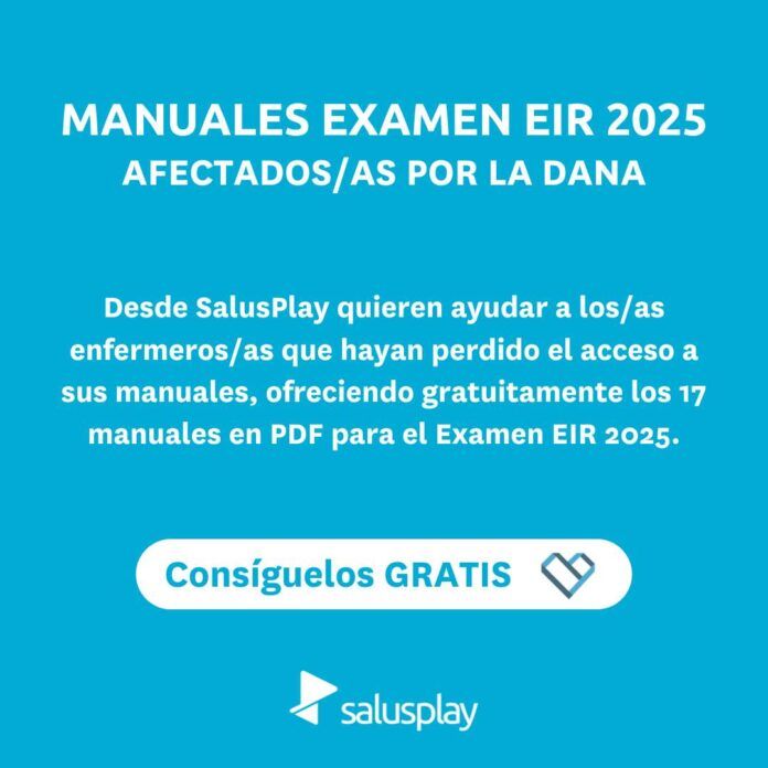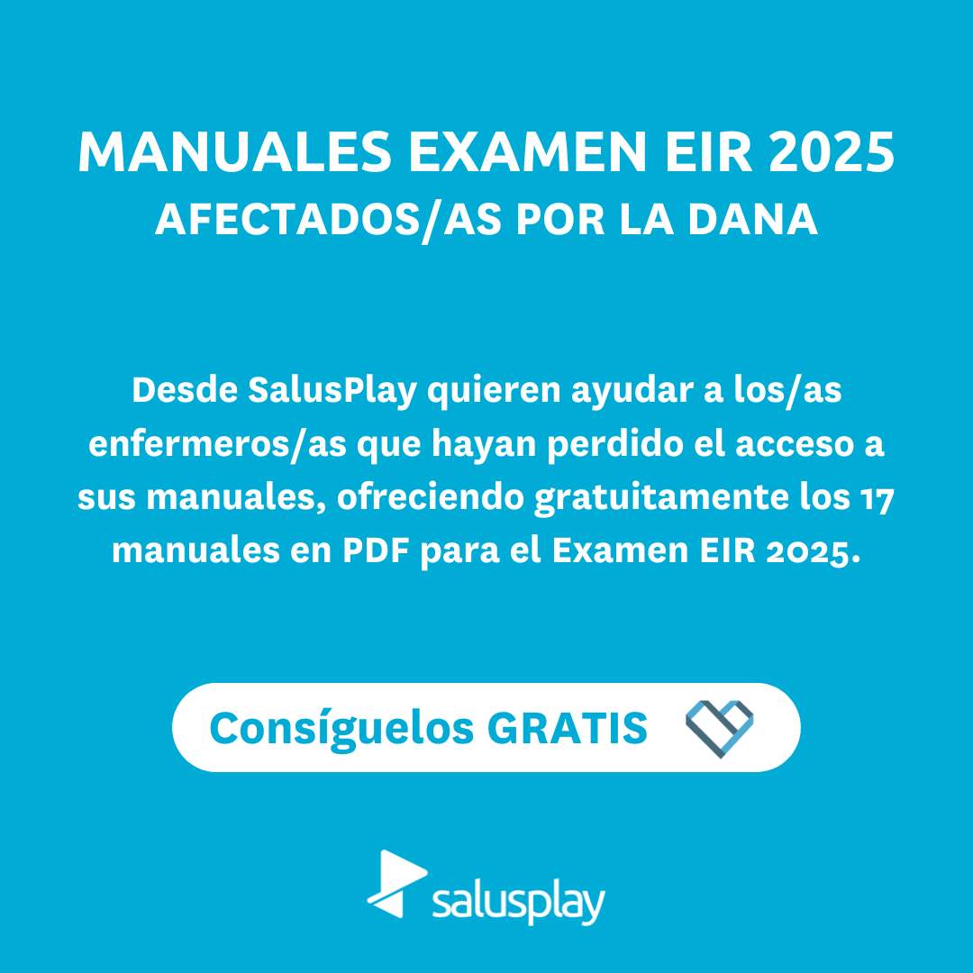 Se trata de manuales EIR 2024/25 en formato PDF disponibles de forma gratuita para aquellas enfermeras/os que los hayan perdido a causa de la DANA o no tengan acceso a sus manuales en su preparación al examen EIR 2025.