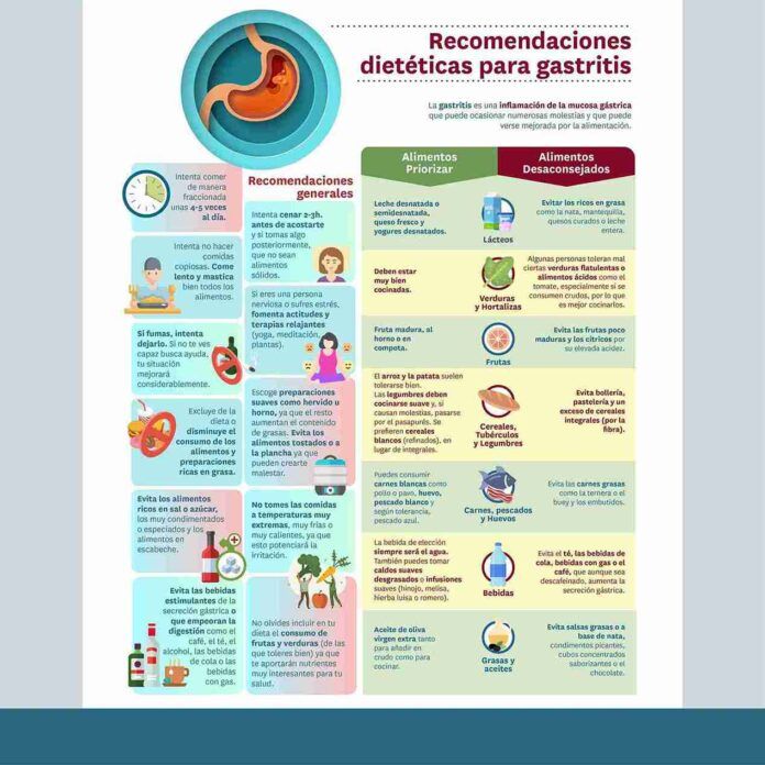 En este nuevo prescribe personalizable y descargable, se han recogido una serie de recomendaciones nutricionales para las personas que sufren de gastritis.