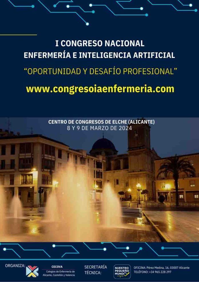 Controlar y optimizar la IA, el reto del sector sanitario; impacto de la IA en salud; seguridad, privacidad y ética en el manejo de herramientas de IA; monitorización, seguimiento del paciente y atención domiciliaria; automatización de tareas y apoyo en la toma de decisiones; IA aplicada a la educación y a la formación continuada, y avances en IA aplicados al seguimiento en pacientes con enfermedades crónicas, son algunos de los temas que se abordarán durante el Primer Congreso Nacional de Enfermería e Inteligencia Artificial que se va a celebrar los días 8 y 9 de marzo en Elche organizado por el Consejo de Enfermería de la Comunidad Valenciana (CECOVA).
